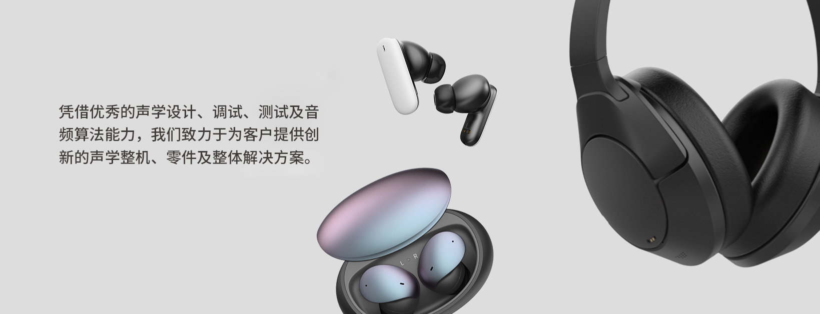 拥有自适应主动降噪、通话降噪、近远场拾音、声学传感器阵列、自话音消除、自适应音量、空间音频等算法技术,可提供行业领先的声学算法解决方案。